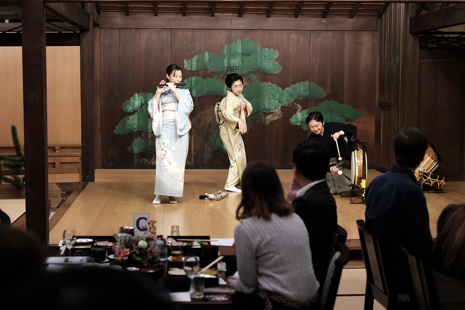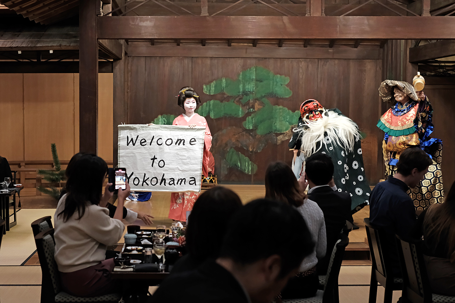 横浜芸者の奏でるBGMを背景に、まるで森の中に包まれるような非日常感あふれるムードがただよいます。