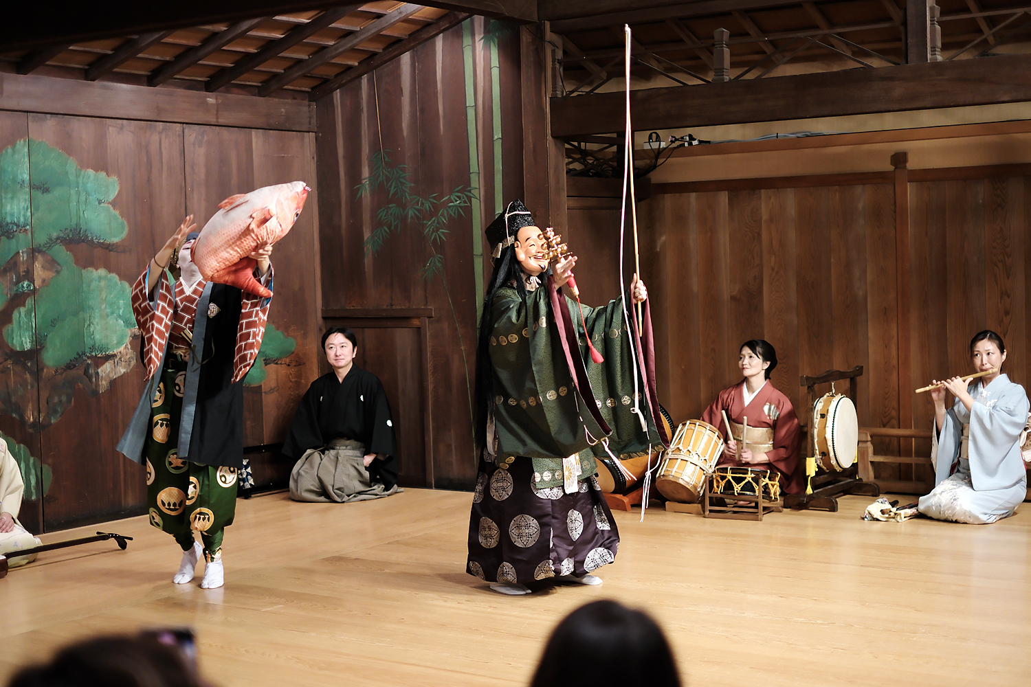 最後の演目は、参加者の健康と商売繁盛を祈念した三崎遊漁で、物語、神話、民話を2つの演目に混ぜ込んだ神楽です。
