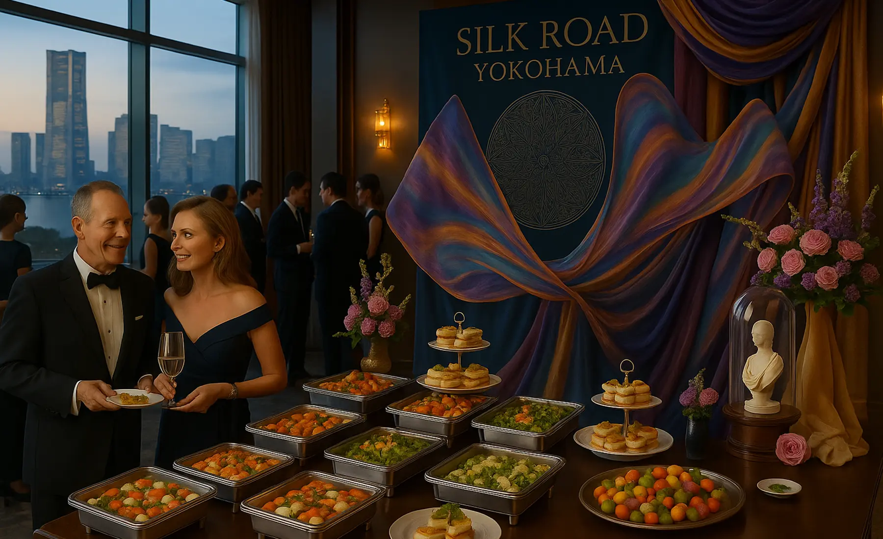 まずは、絹をテーマにした美と味の融合「Silk Dining」。シルクの繊細さや艶やかさを料理で表現し、上質なガストロノミー体験をお楽しみいただけます。次に、シルク素材に実際に触れ、職人の手ほどきを受けながら染色やスカーフづくりを体験する「Silk Craft」。日本の伝統技術に触れる貴重なひとときです。そして、横浜の芸者による幻想的な舞で、古のシルクロードを表現する「Silk Performance」。港町・横浜ならではの国際性と和の美が融合します。さらに、横浜スカーフや染織デザインを纏い、撮影やファッション体験ができる「Silk Fashion」では、自らが作品の一部となる楽しさを味わえます。これらの体験を一堂に集めたハイライトが「Silk Reception」。各プログラムの魅力が凝縮された交流の場として、ビジネスゲストやMICE関係者、VIPのおもてなしに最適です。